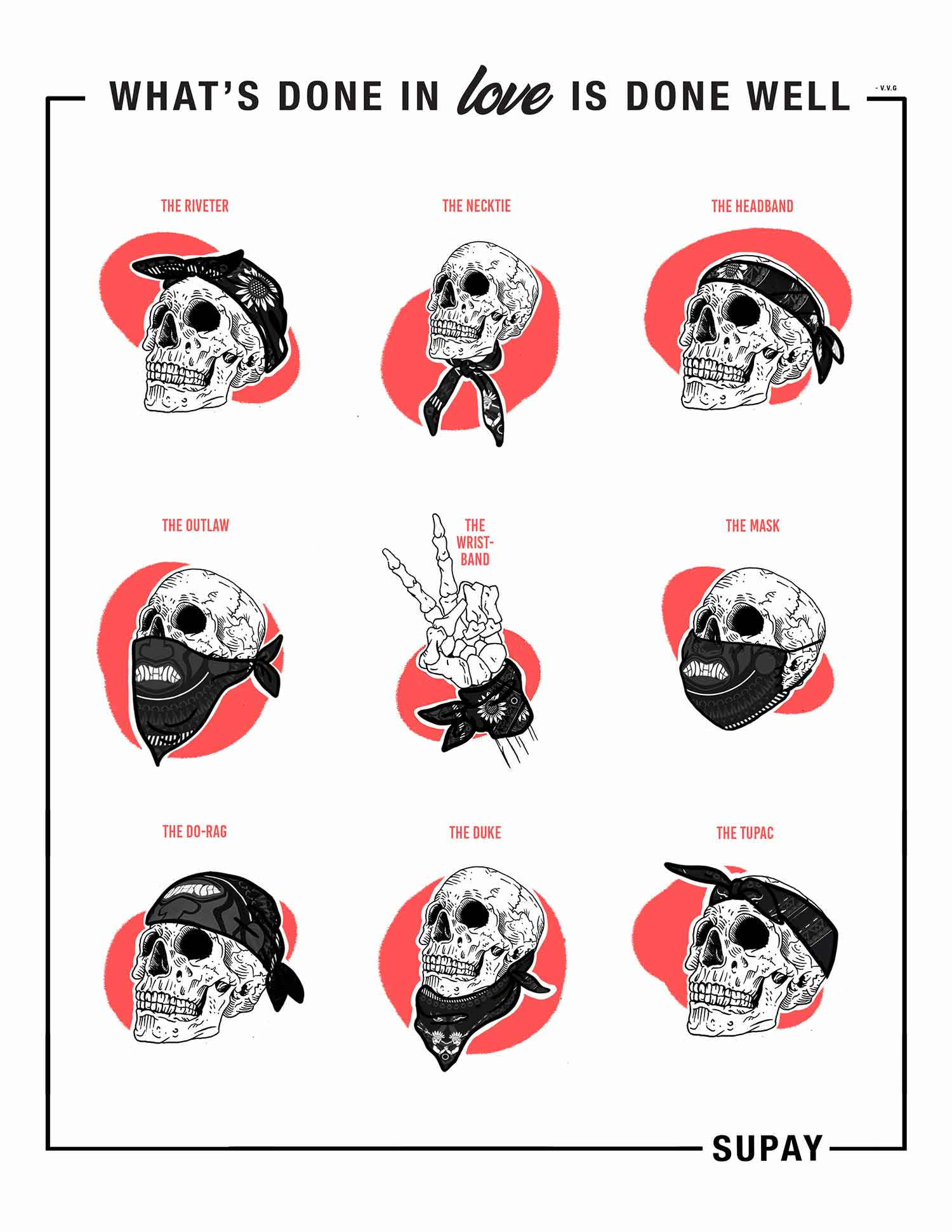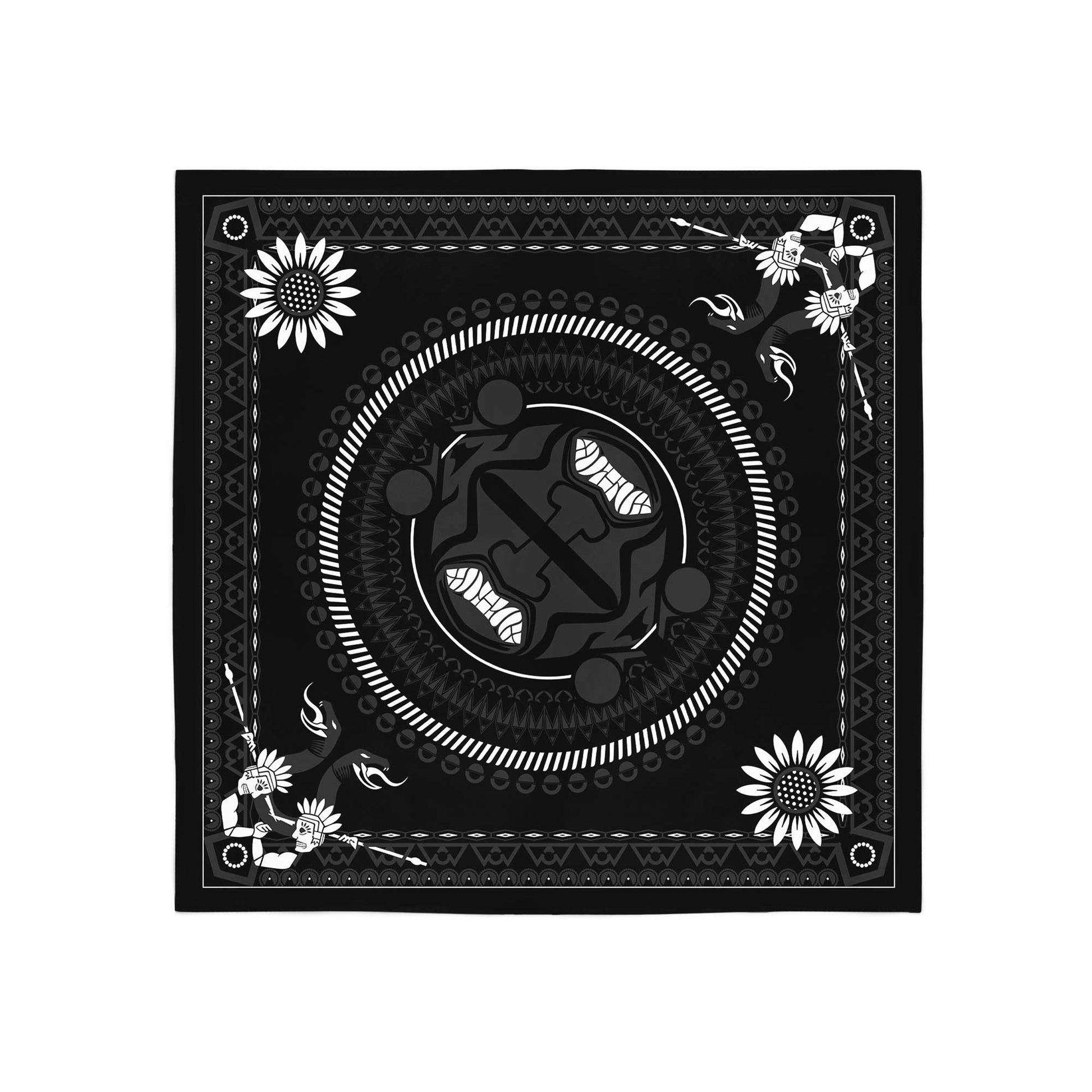 Our bandana is made from 100% lightweight cotton, printed with water-based ink for a smooth touch, 22"x22" and one size fits all.