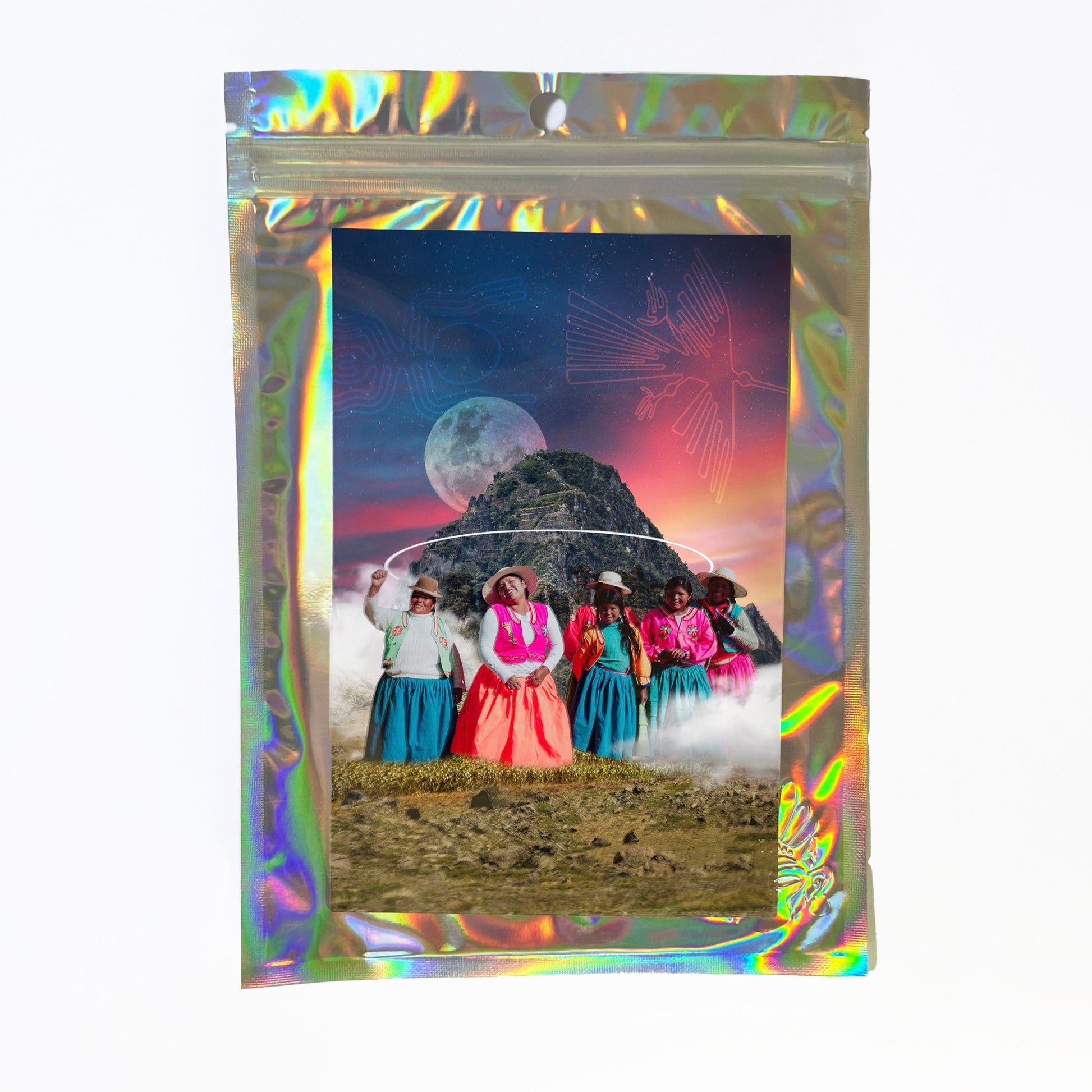 The condor is headed towards the sun (upper world - Hanan Pacha) and the spider towards the moon (lower world - Uku pacha). A design collaboration with Brooklyn Warmi showcasing the beautiful and radiating spirit of Andean women.
