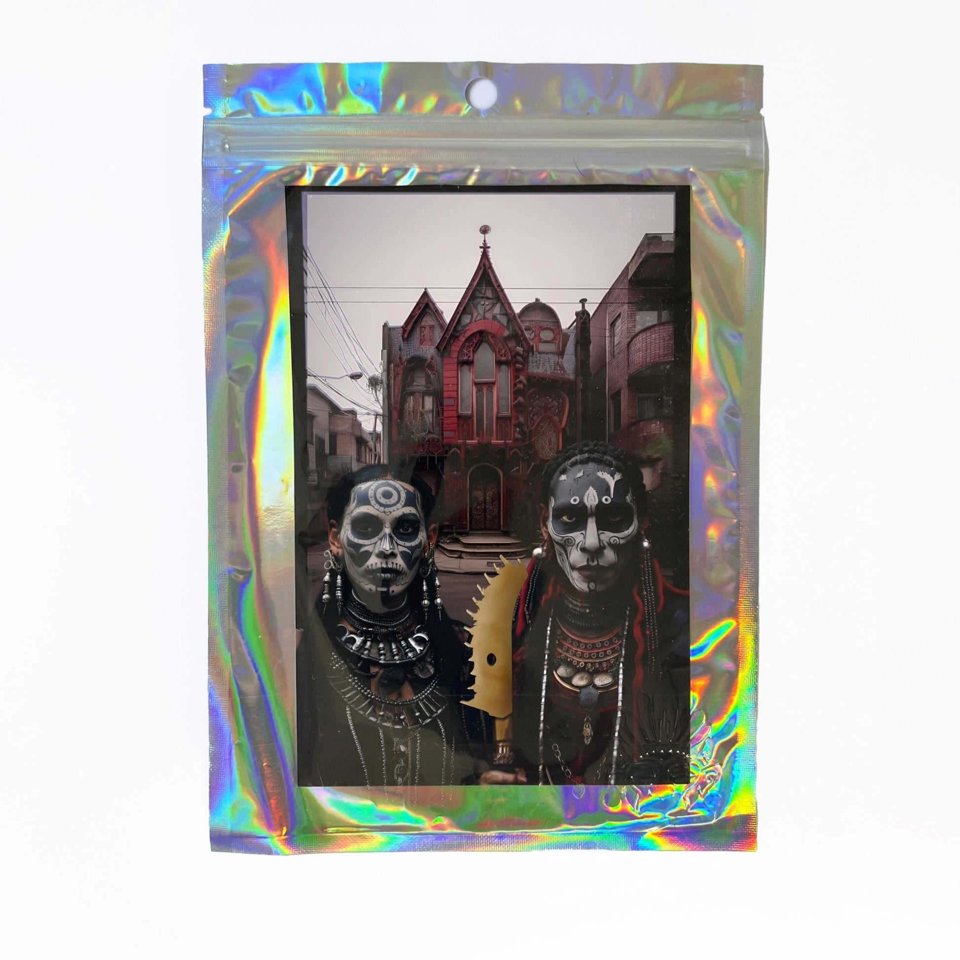 This 4"x6" magnet showcases a beautiful metallic photo print and comes bundled in a holographic reusable bag.
