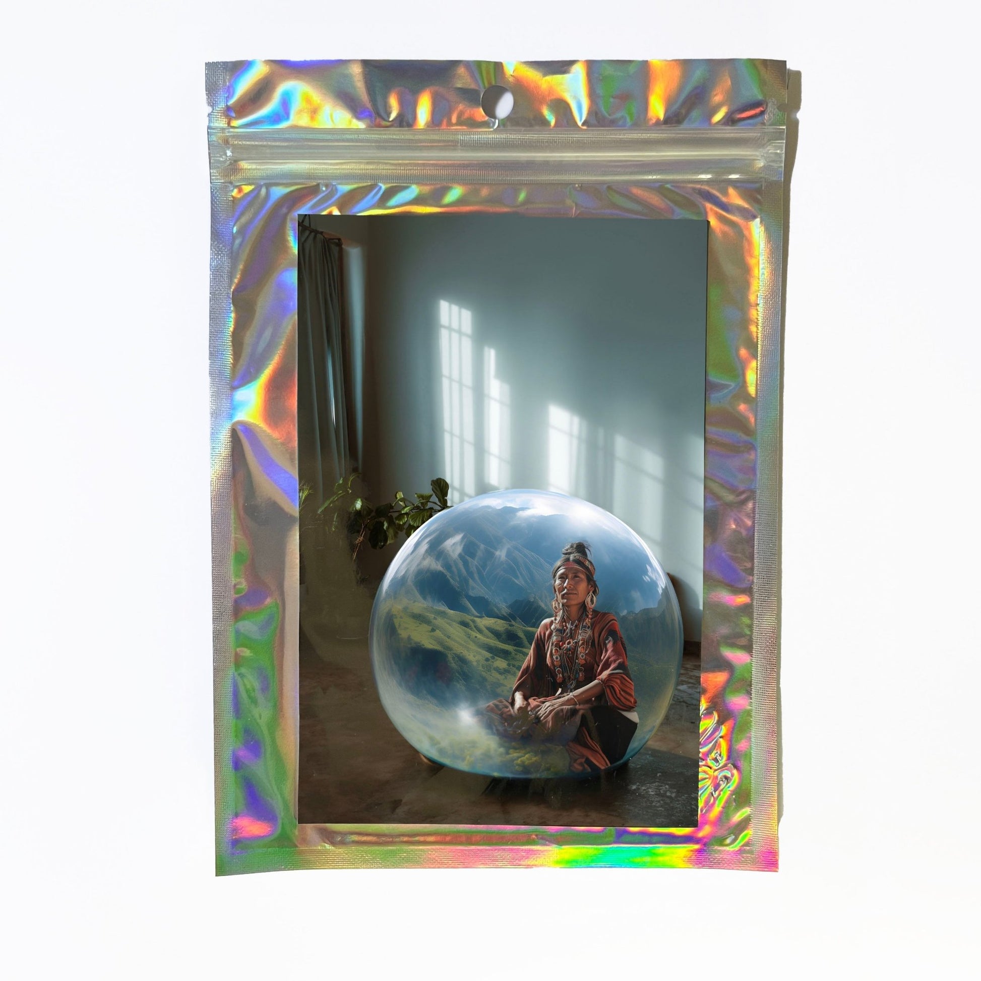 This 4"x6" magnet showcases a beautiful metallic photo print and comes bundled in a holographic reusable bag.