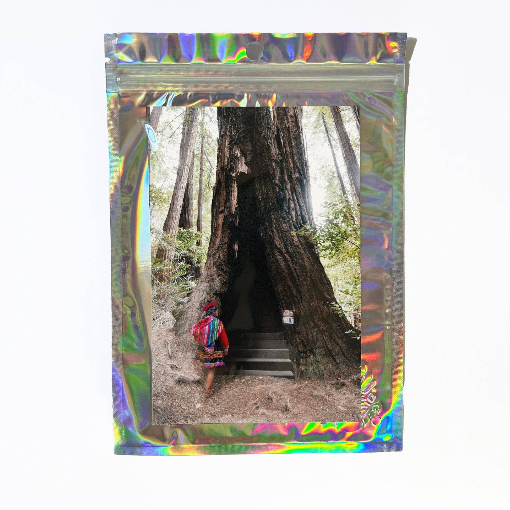 This 4"x6" magnet showcases a beautiful metallic photo print and comes bundled in a holographic reusable bag.